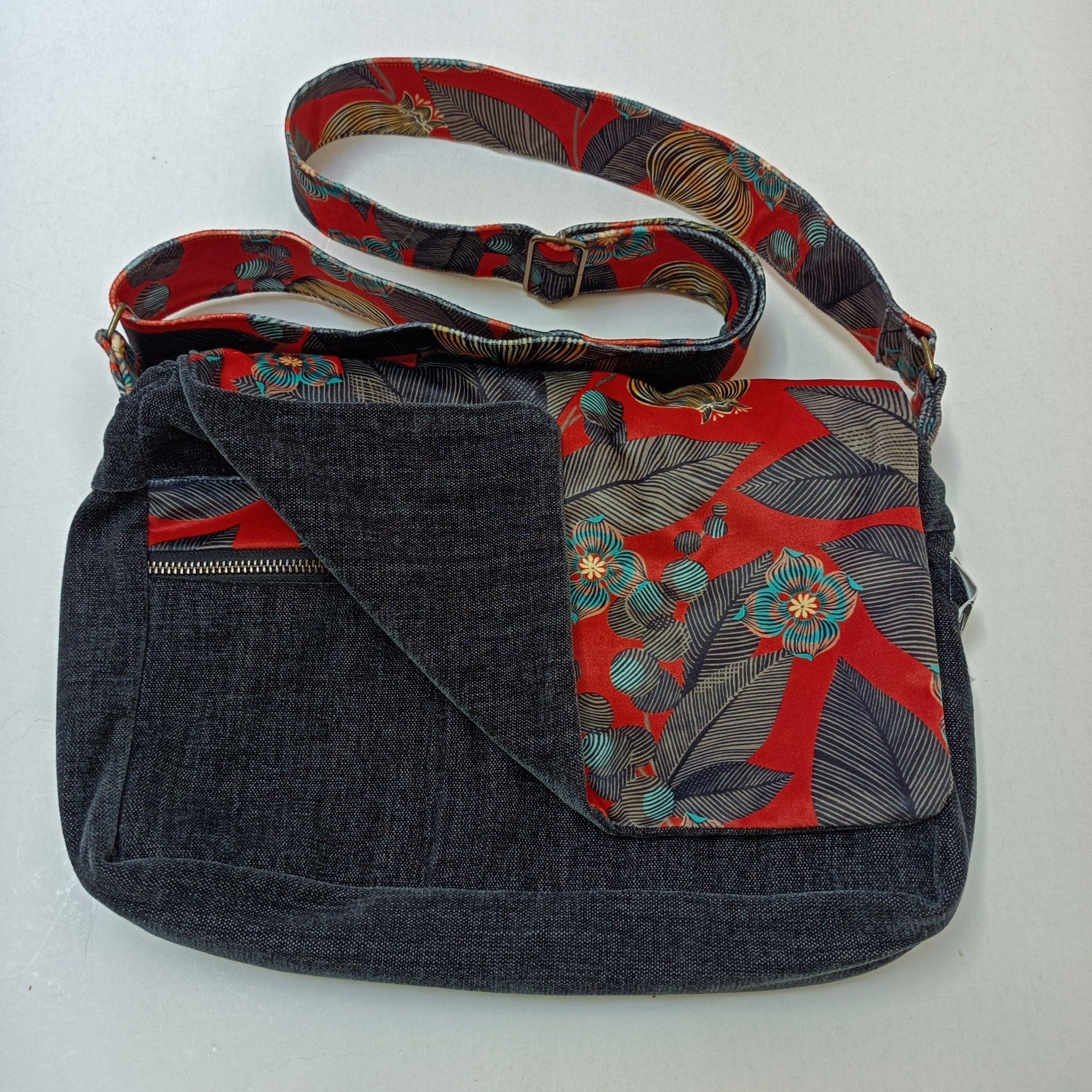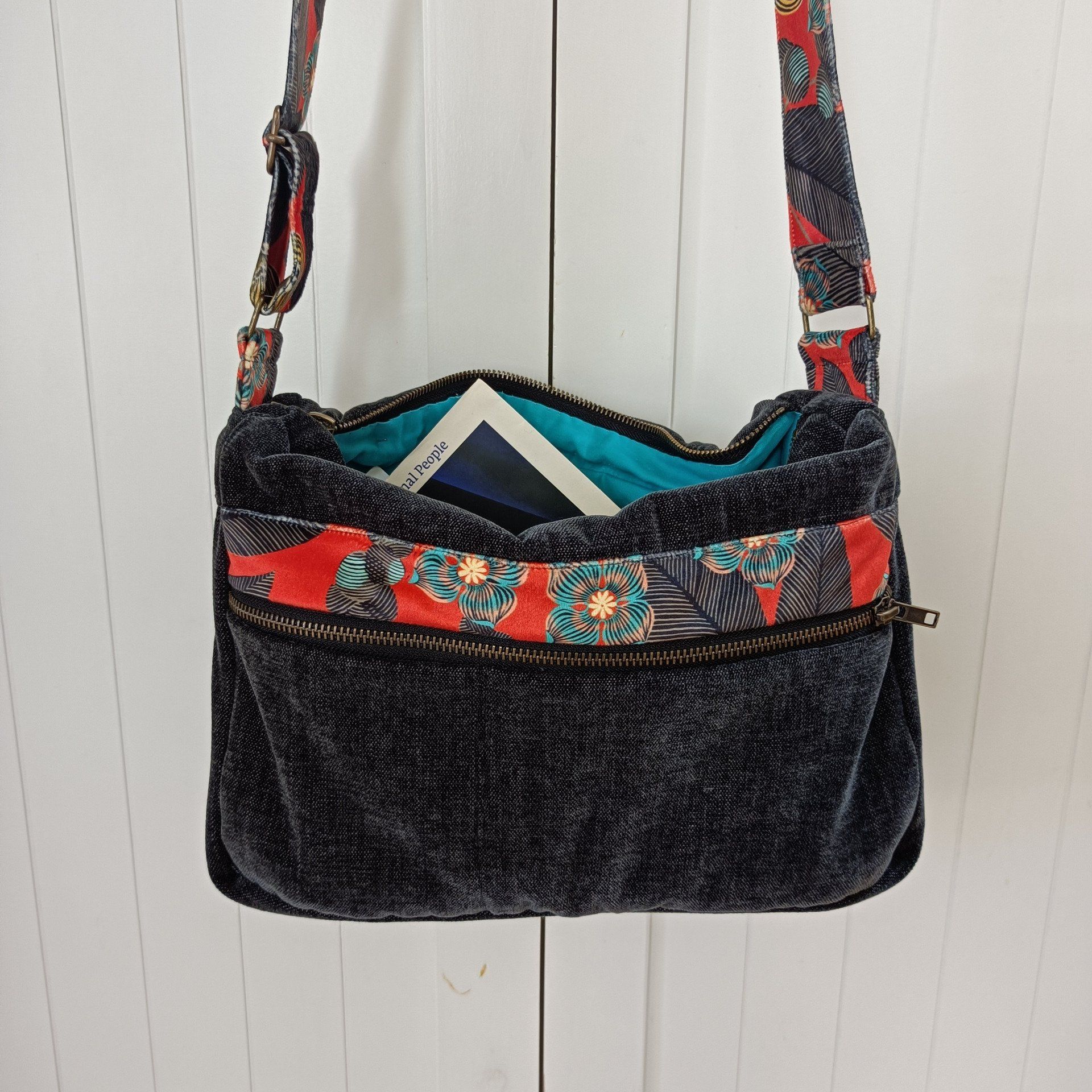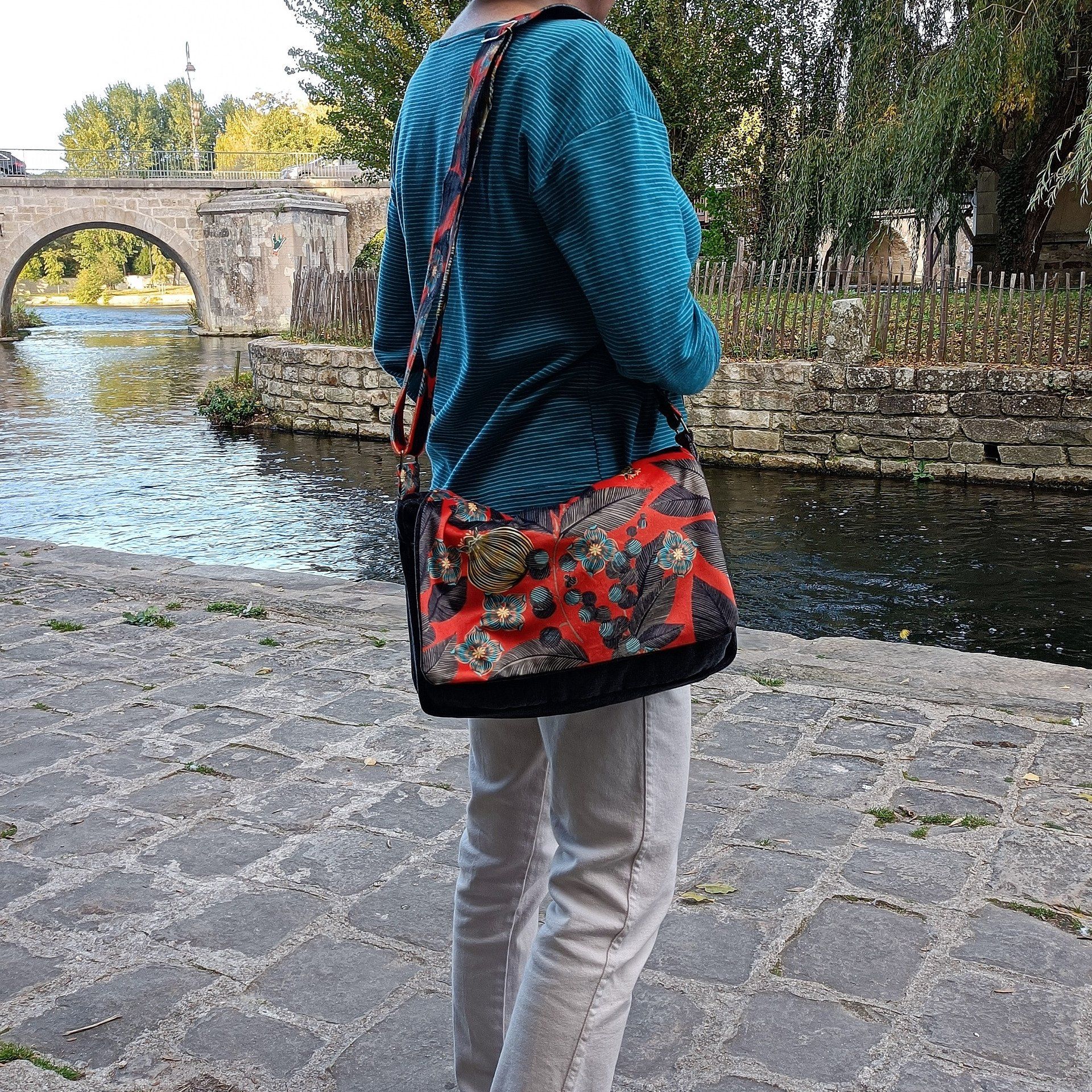 Besace velours anthracite - Rabat Fruit du paradis de maison Thévenon- Fait main en France