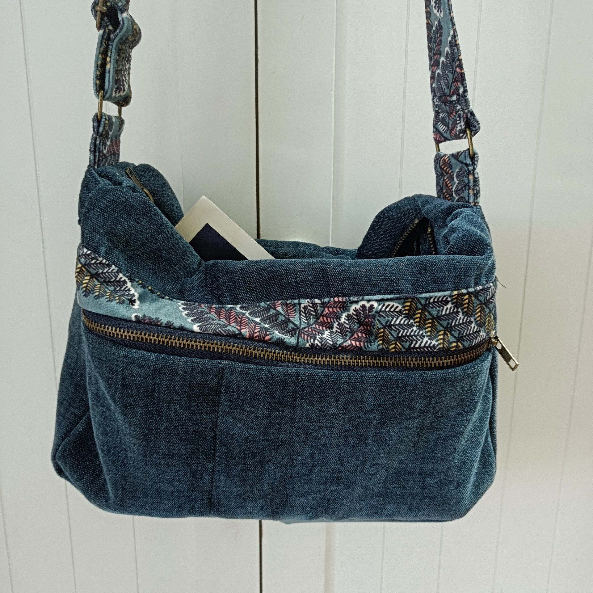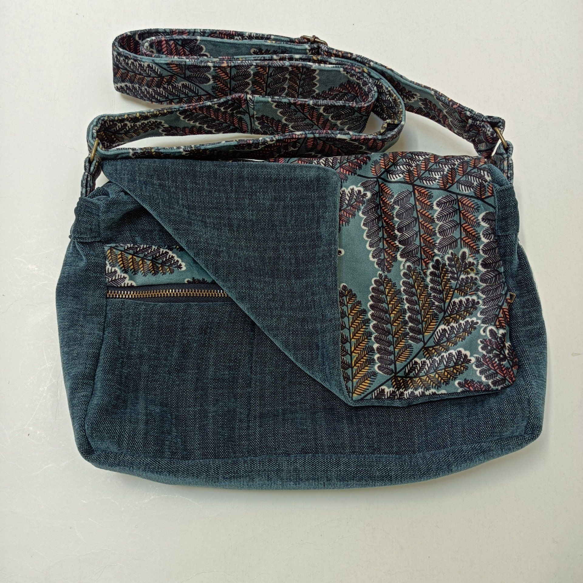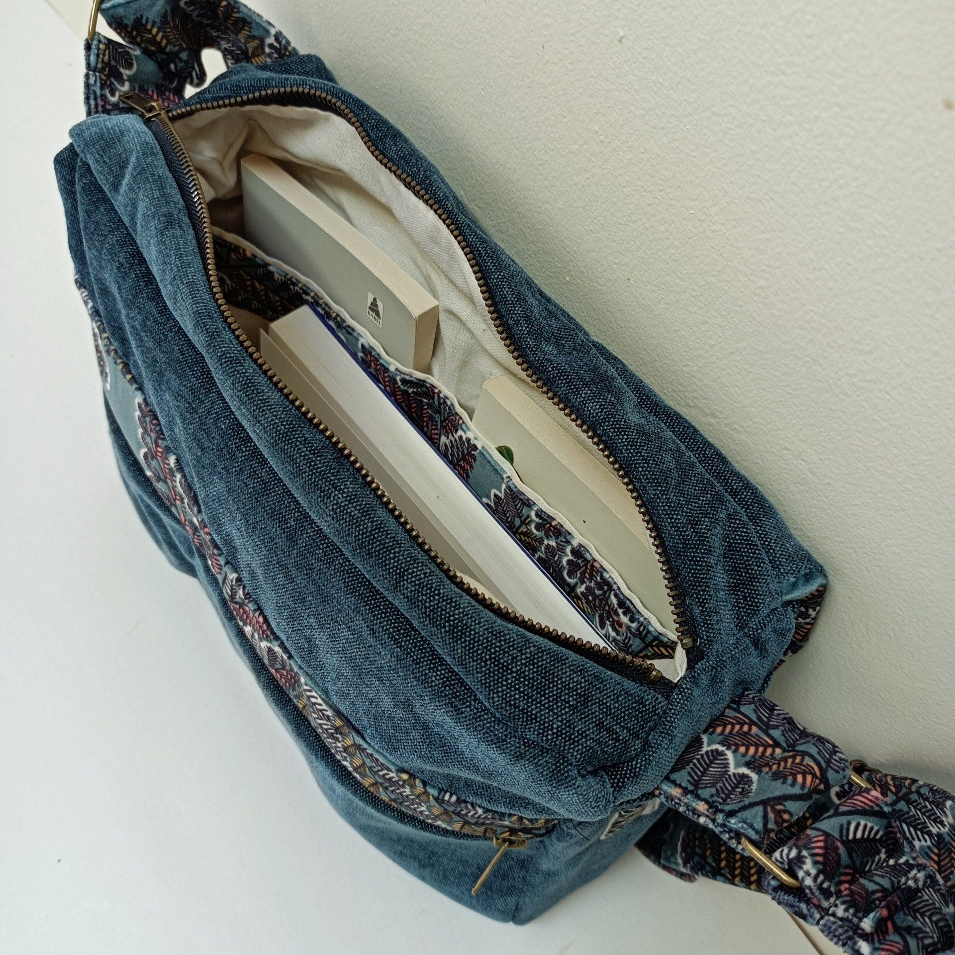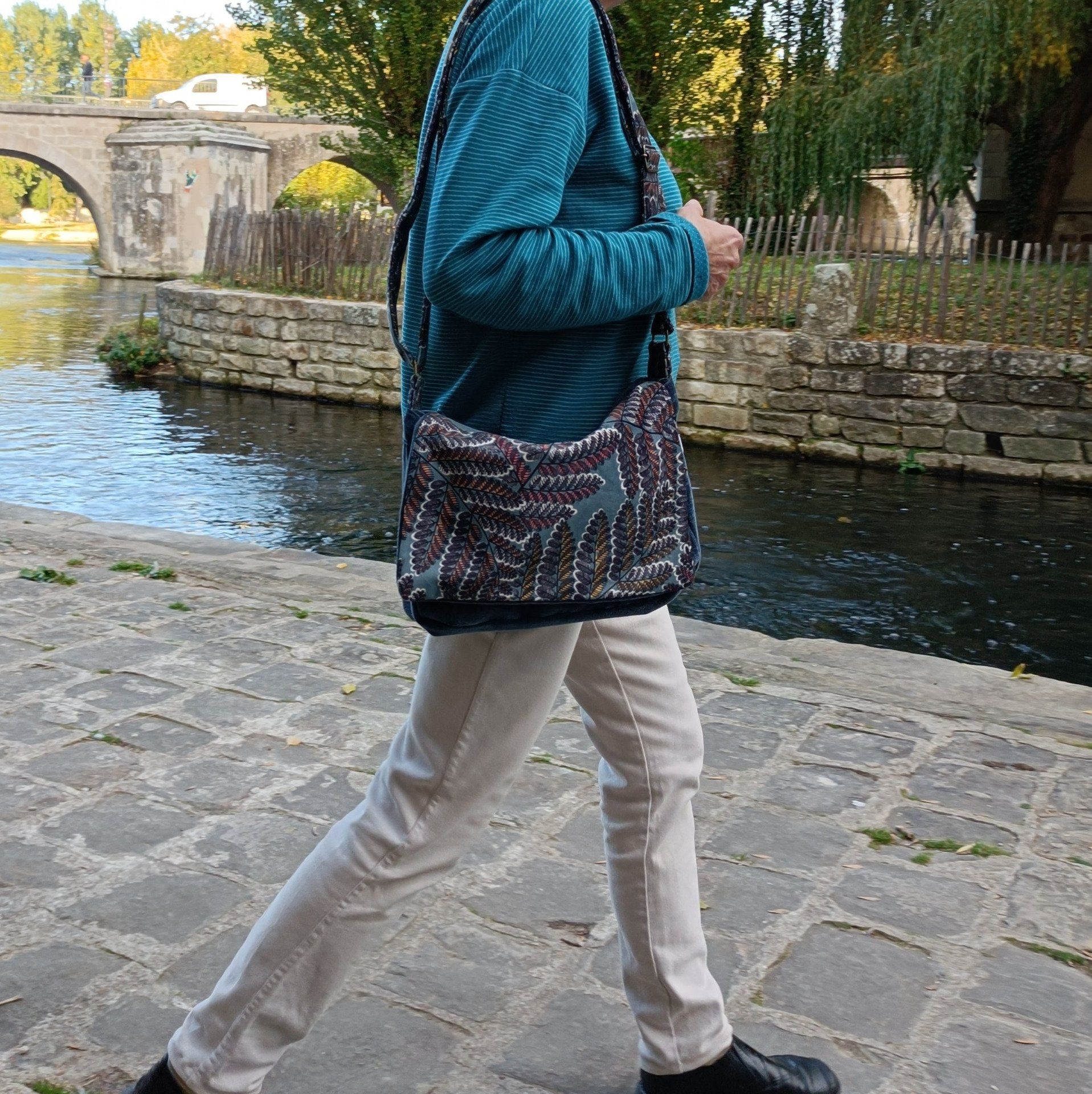 Besace velours bleu canard - Rabat Victoire bleu de Maison Thévenon- Fait main en France