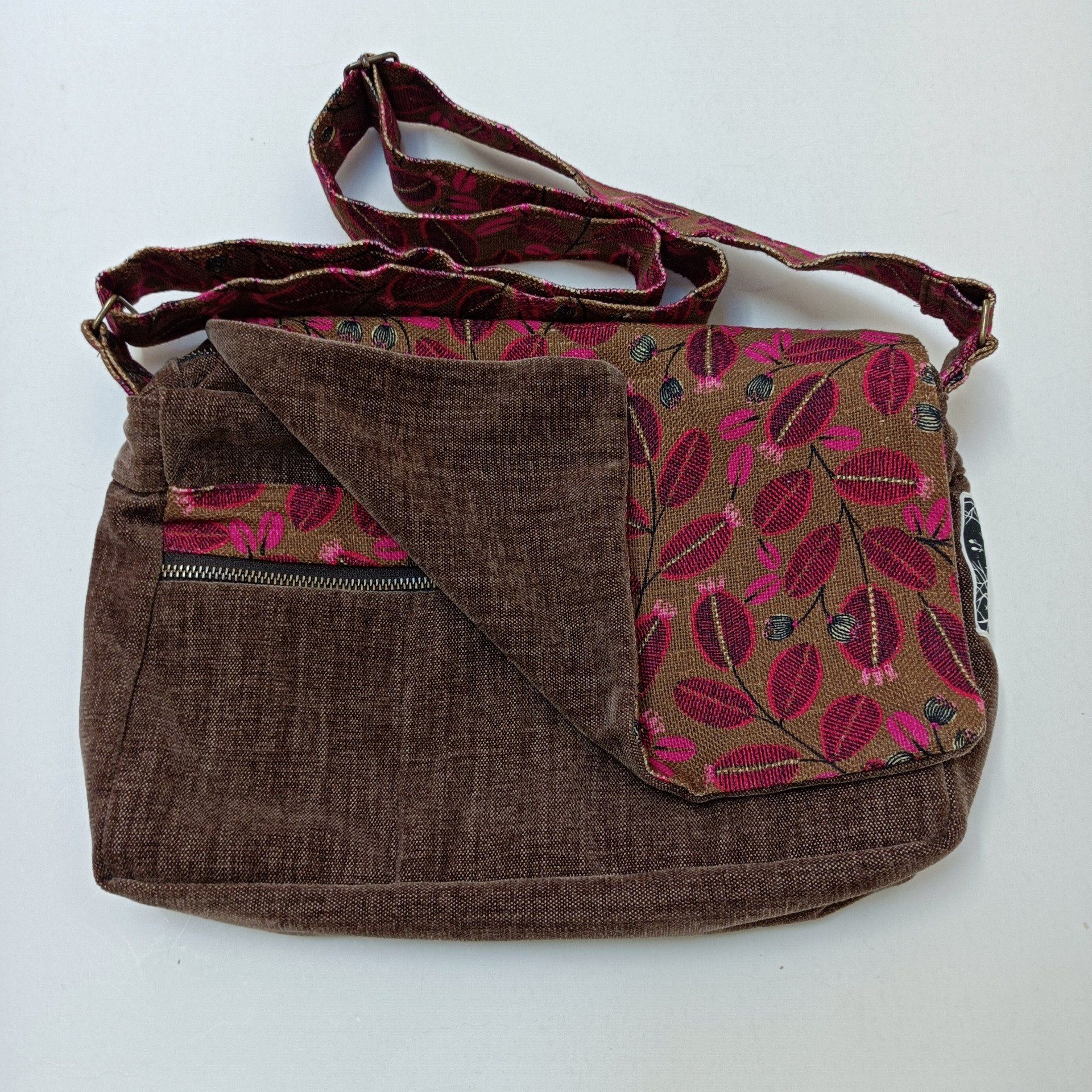 Besace velours Rober brun - Rabat lin Lifestyle rose de Maison Thévenon - Fait main en France