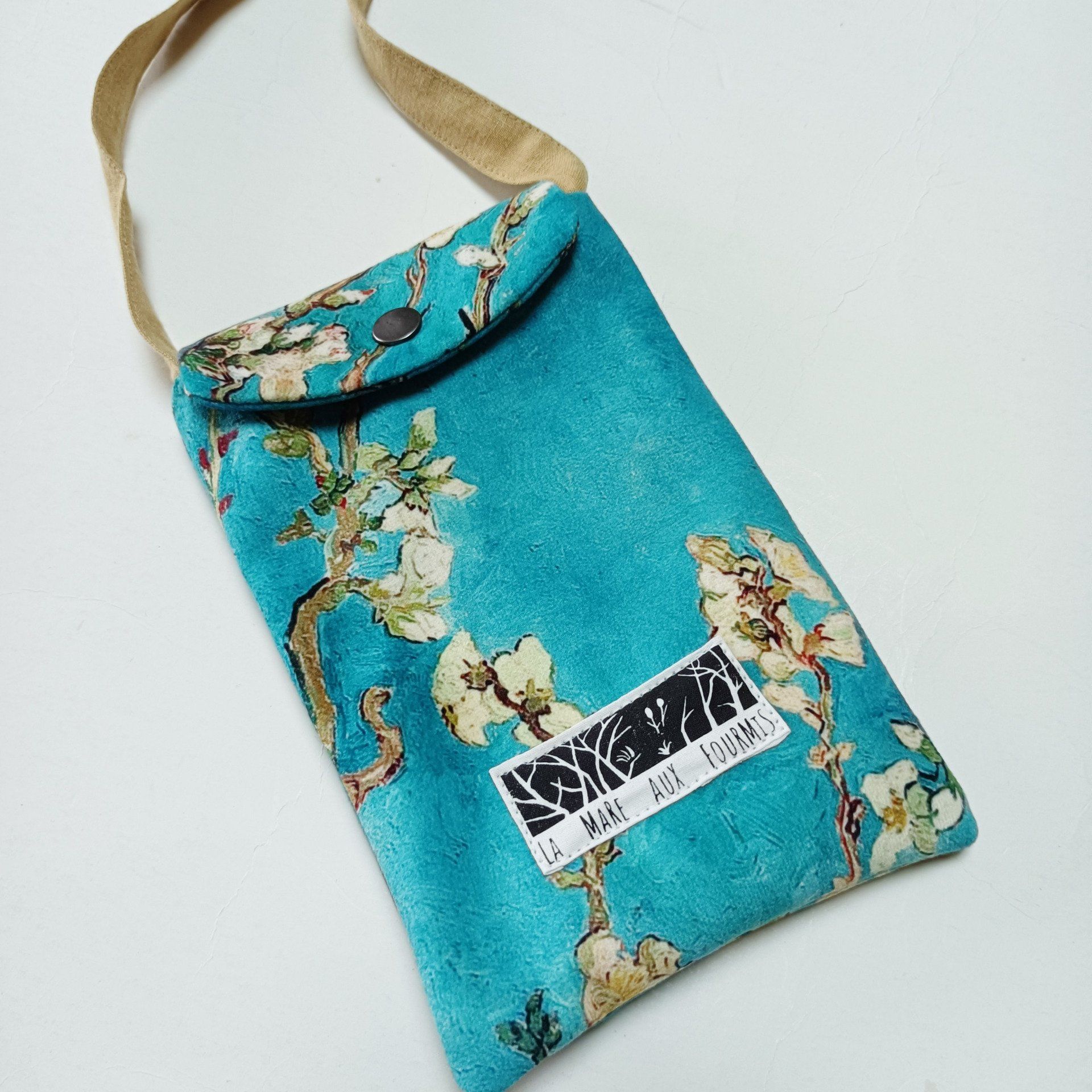 Pochette bandoulière - Spéciale tel portable - Velours Van Gogh bleu- Fait main en France