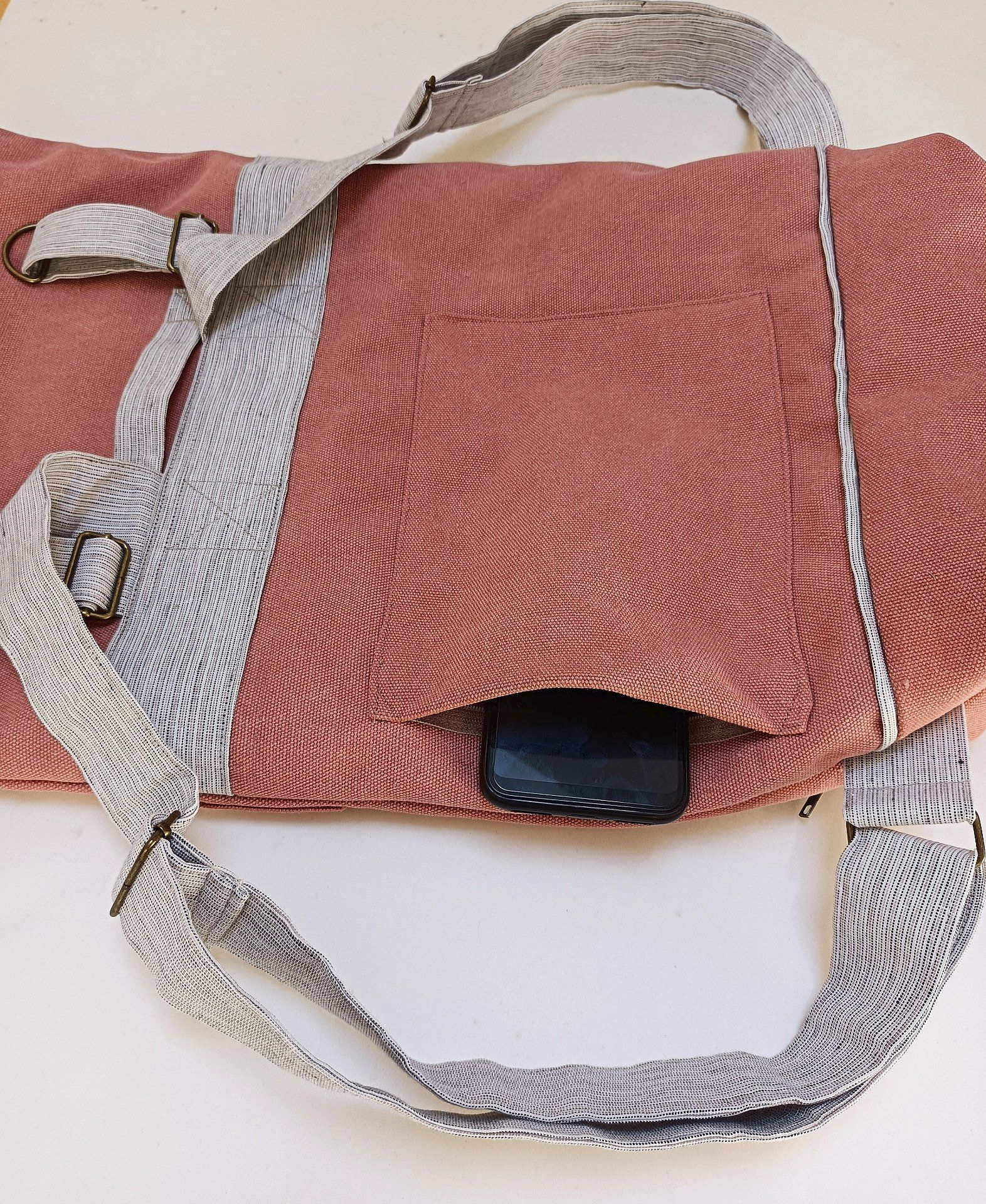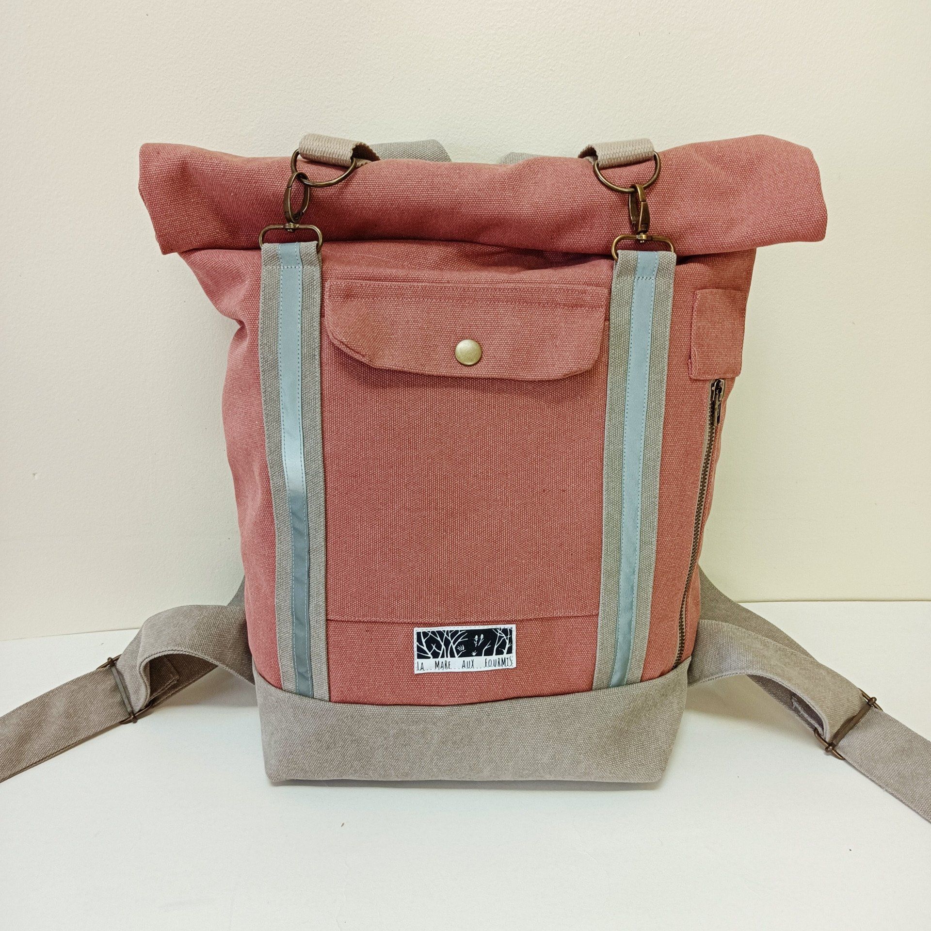 Sac à dos toile coton Cayman terracotta - beige - Fait main en France