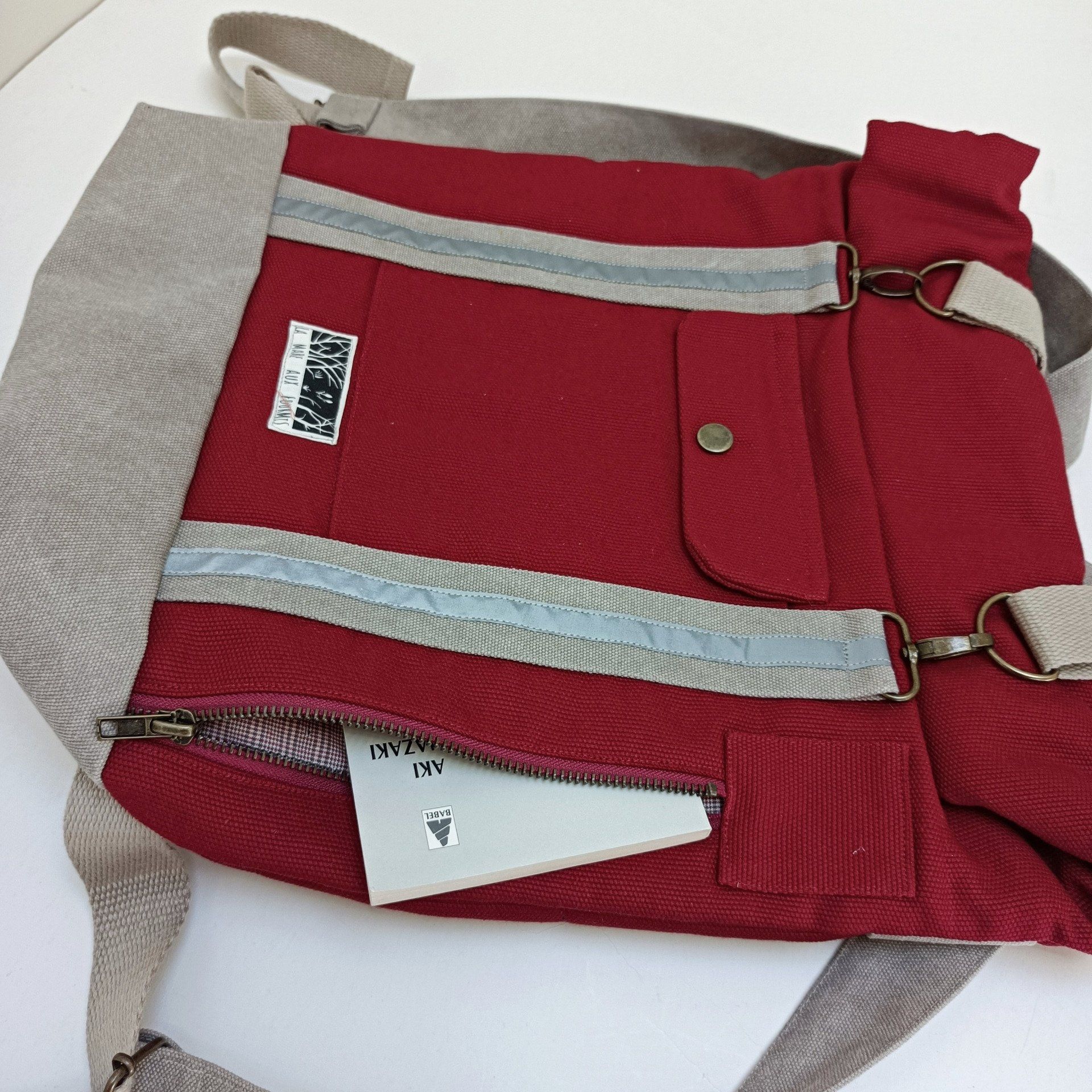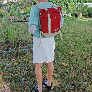 Sac à dos coursier toile coton Thèbes rouge carmin - Fait main en France