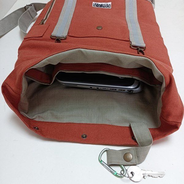 Sac à dos coursier toile coton Thèbes terracotta - beige