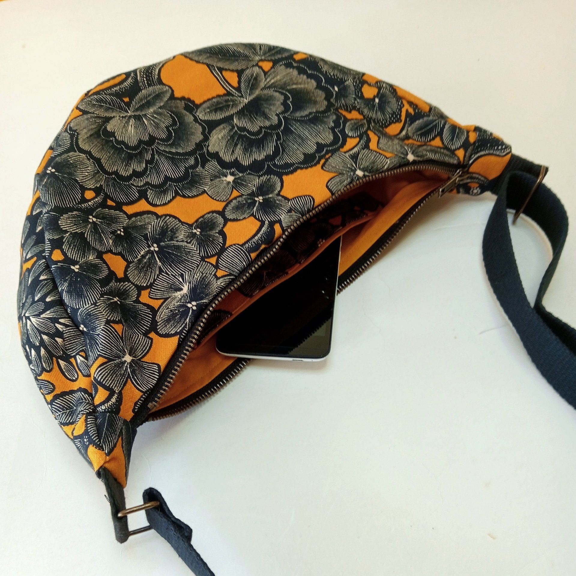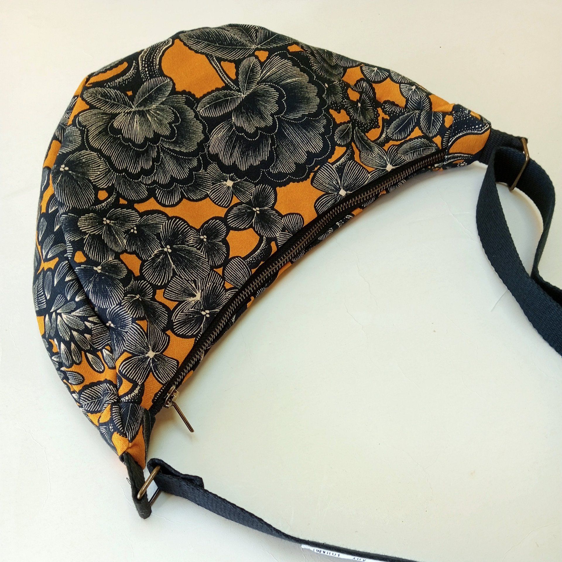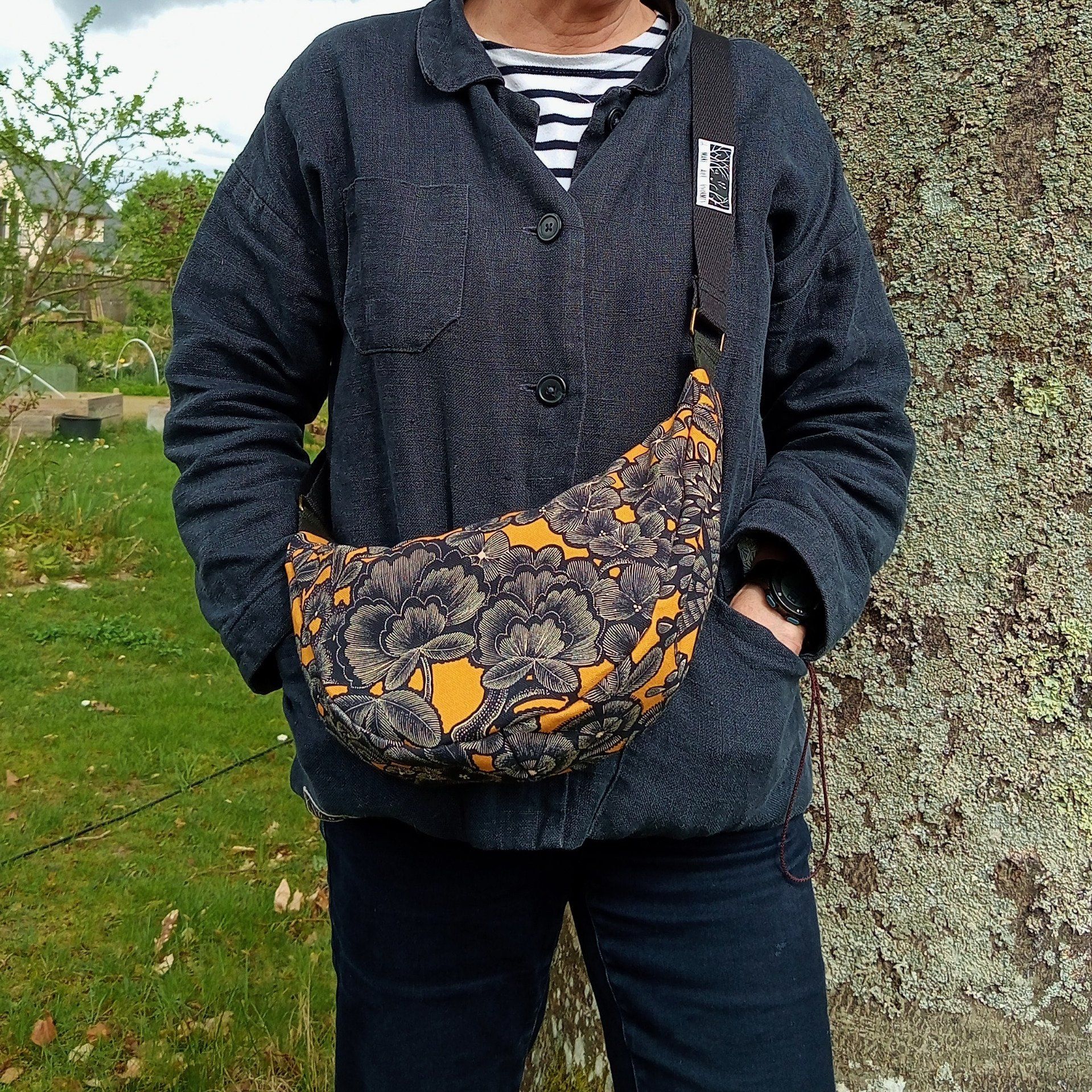 Petit sac demi-lune Coton jaune/noir Kew garden de Maison Thévenon - Fait main en France
