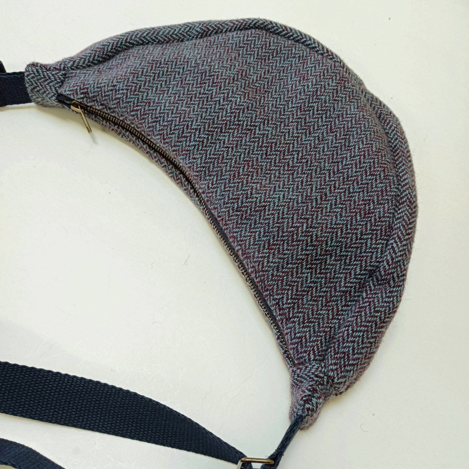 Petit sac demi-lune Lainage bleu chevrons - Fait main en France