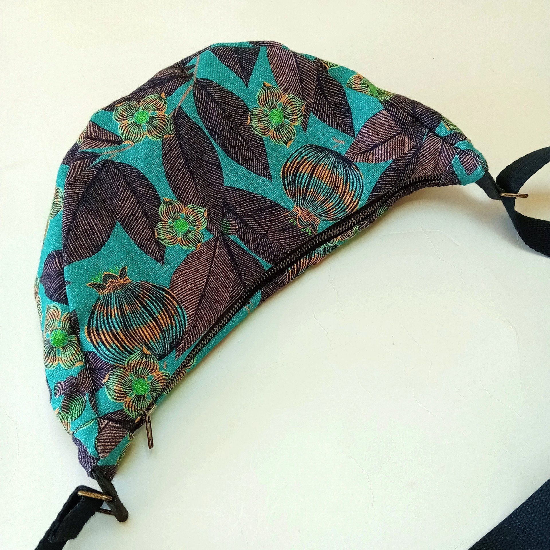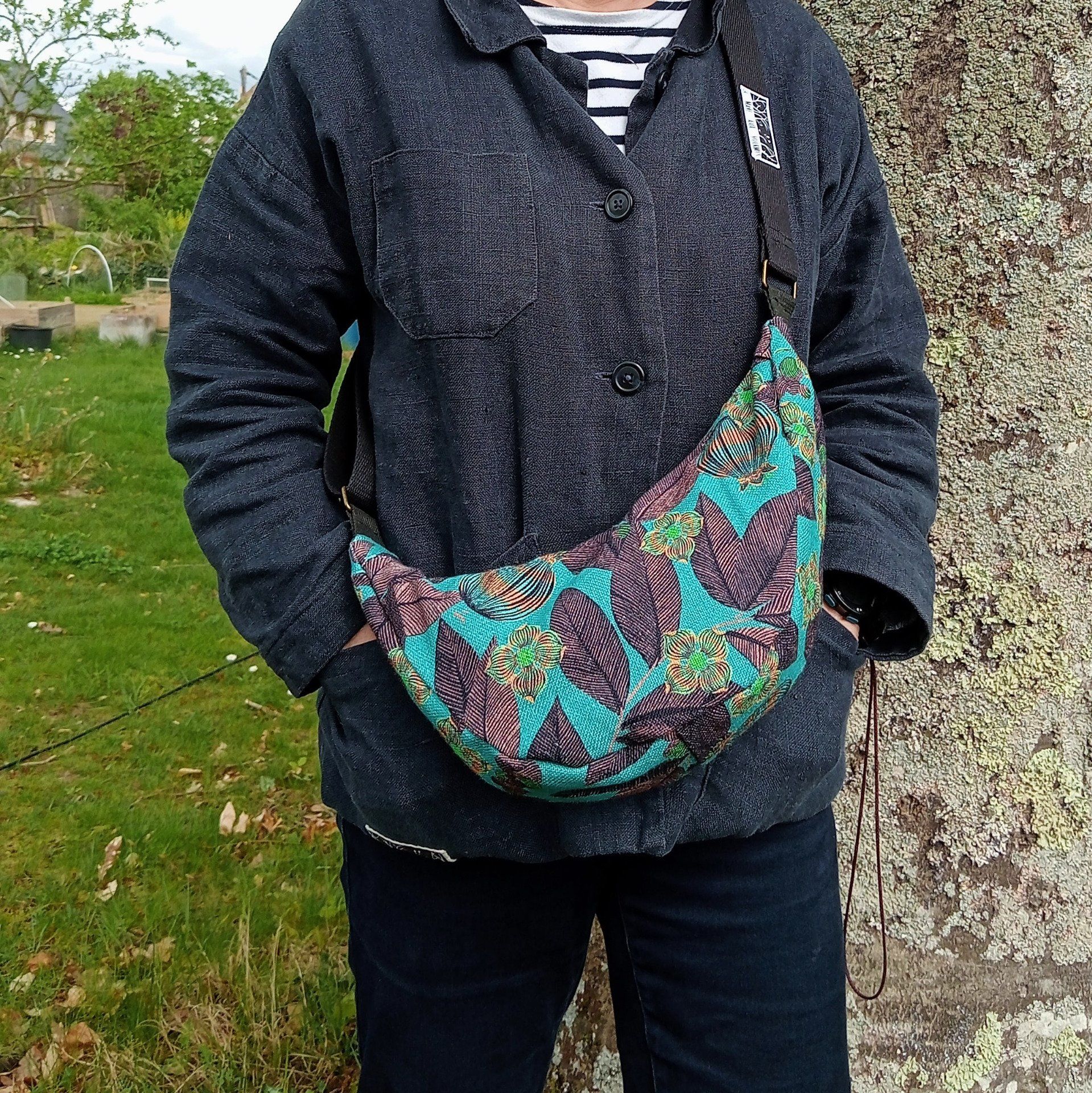 Petit sac demi-lune Lin vert Fruits du paradis de Maison Thévenon - Fait main en France