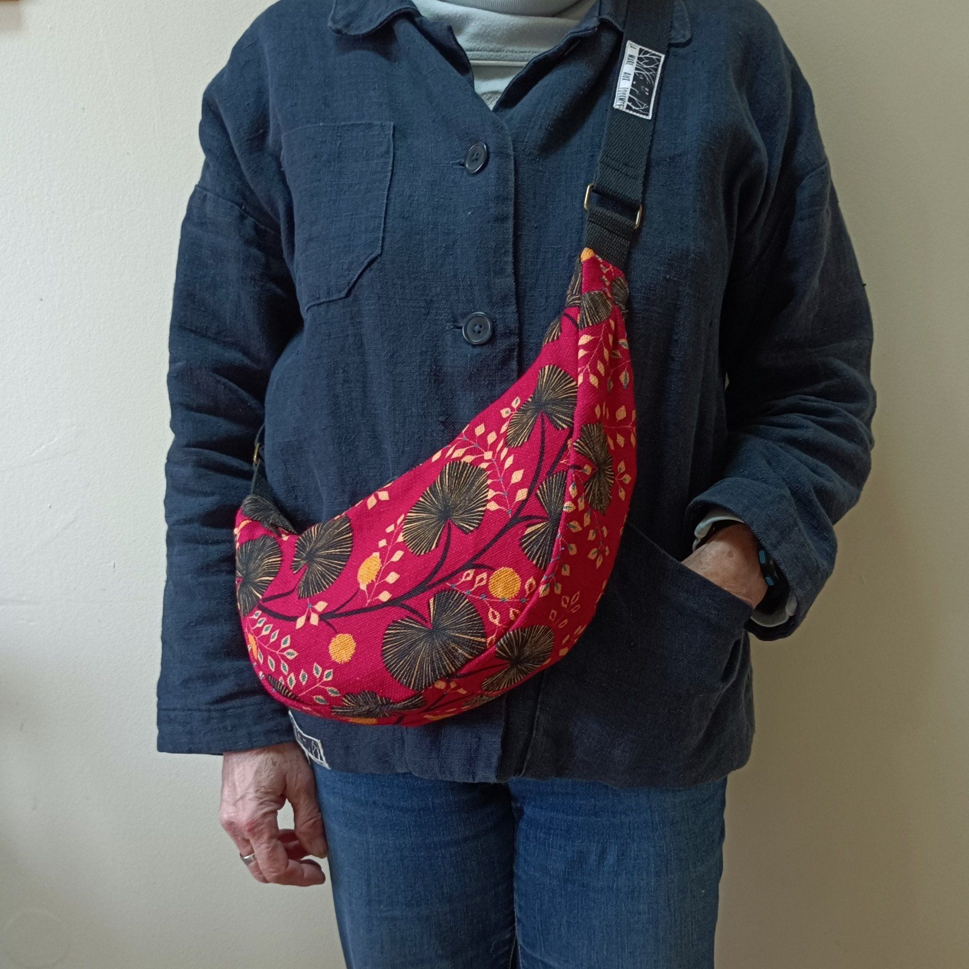 Petit sac demi-lune - Pondichery rouge de Maison Thévenon - Fait main en France
