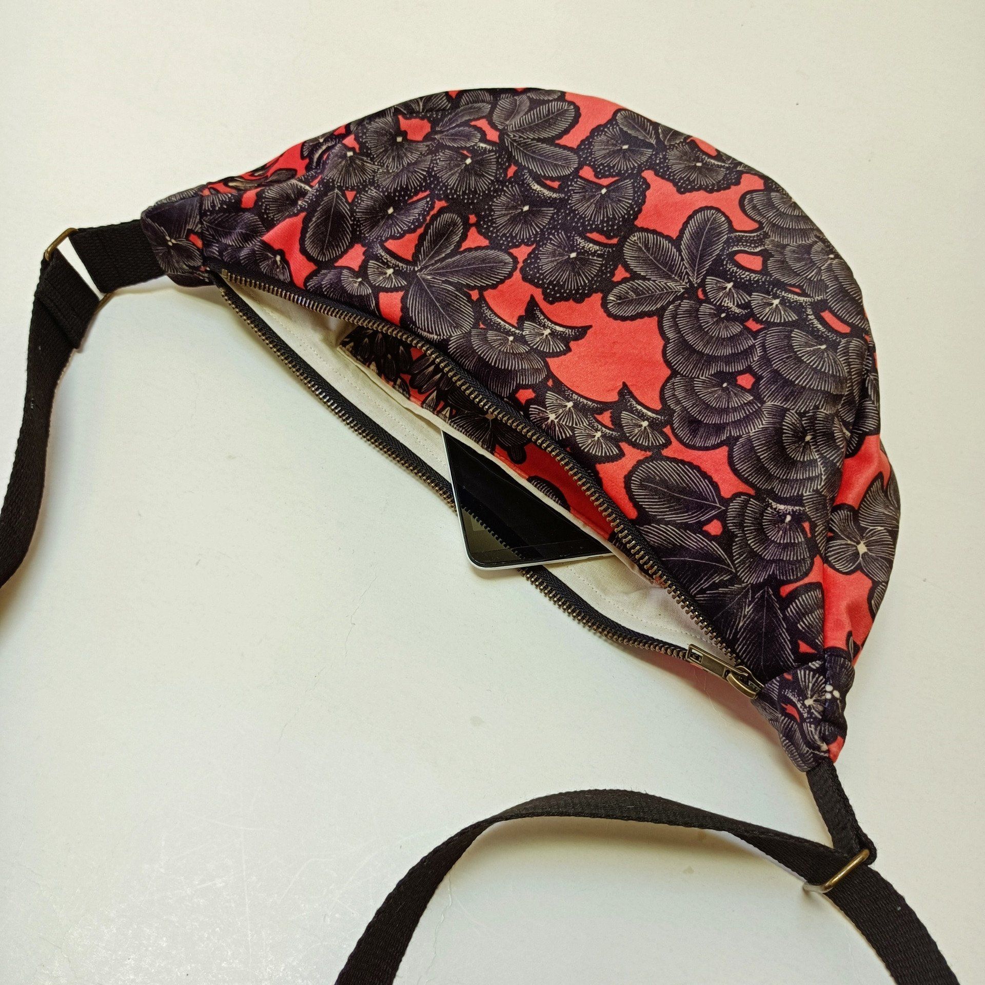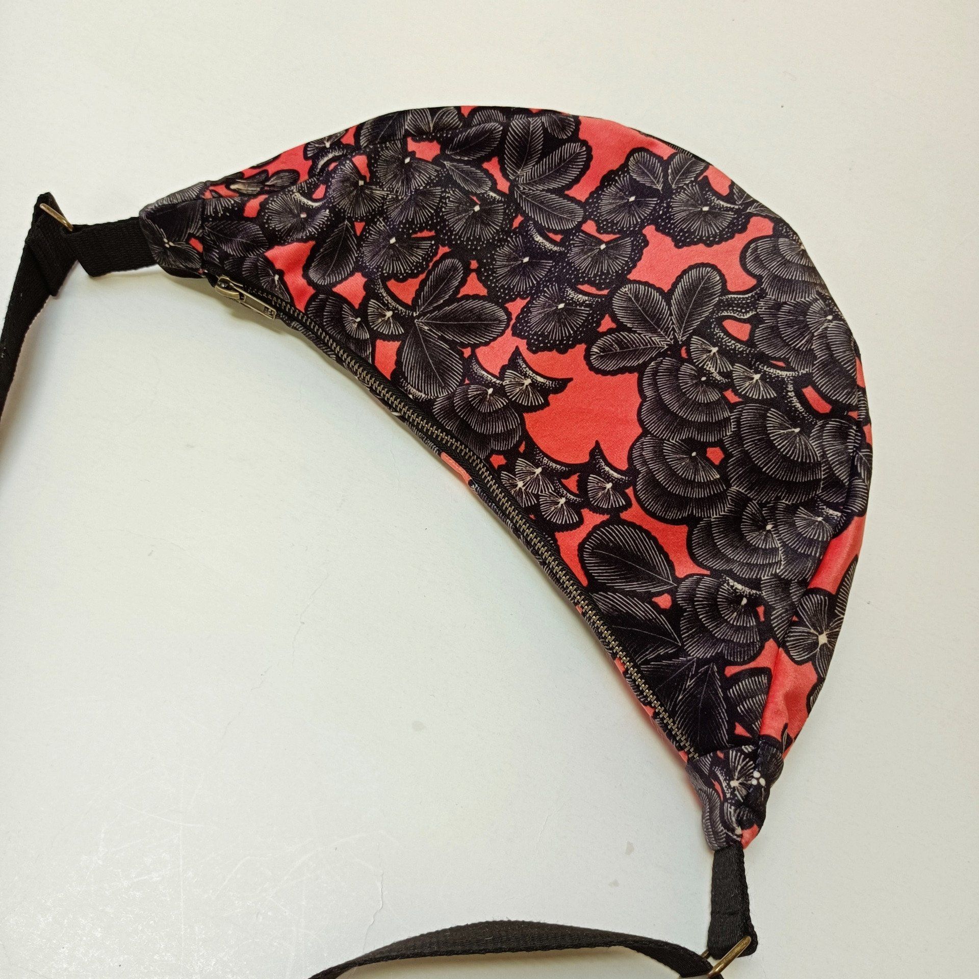 Petit sac demi-lune velours Kew Garden corail/noir de Maison Thévenon - Fait main en France